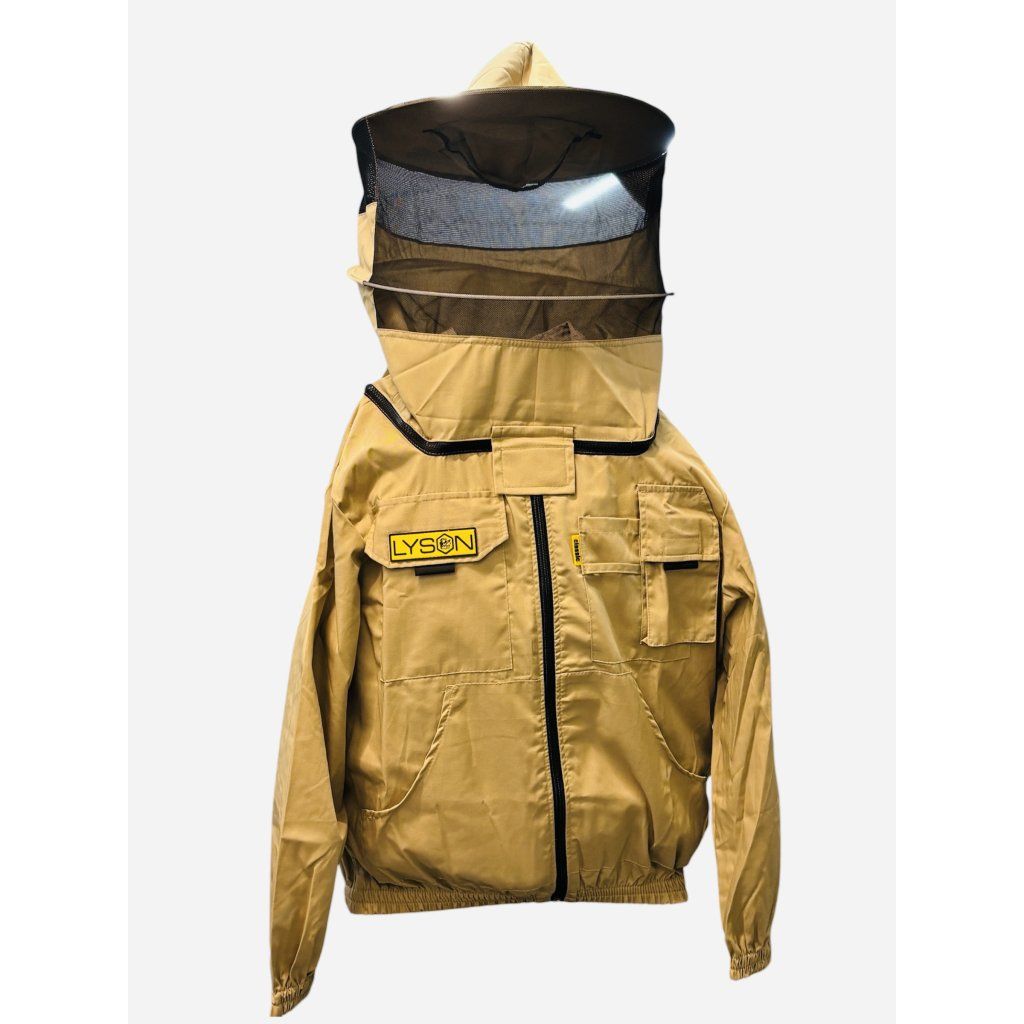 Hnedá včelárska bunda na zips s odnímateľným klobúkom
